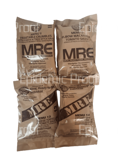Menu 11 - Vegetable Crumbles with Pasta in Taco Sauce: Includes Applesauce, First Strike Bar, Peanut Butter, Crackers, Jalapeno Cashews, French Vanilla Beverage Powder