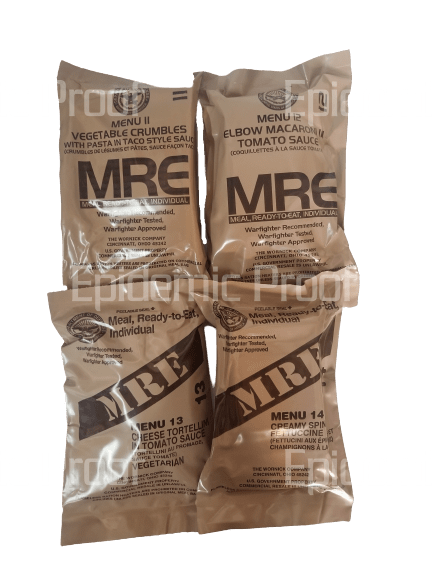 Menu 12 - Elbow Macaroni in Tomato Sauce: Includes Applesauce, Peanut Butter, Strawberry Jam, Pretzel Sticks, Wheat Bread, Chocolate Protein Beverage Powder