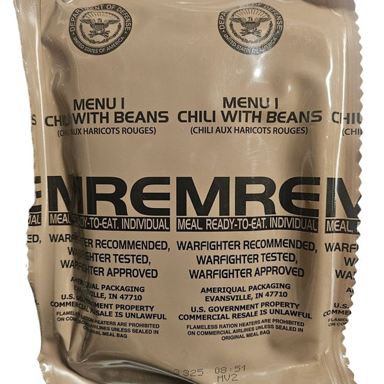 Inspection Year: 2026 or Newer [Pack Year 2023+]. Every Meal Ready to Eat Ration is brand new and factory sealed. MREs have a shelf life of 5+ years when properly stored in a cool, dry environment.