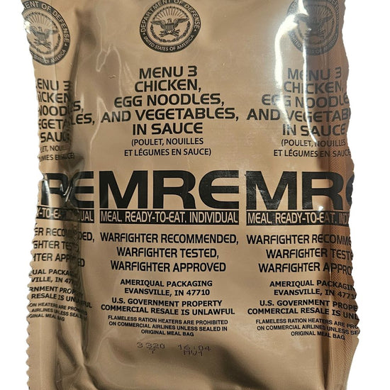 Inspection Year: 2026 or Newer [Pack Year 2023+]. Every Meal Ready to Eat Ration is brand new and factory sealed. MREs have a shelf life of 5+ years when properly stored in a cool, dry environment.