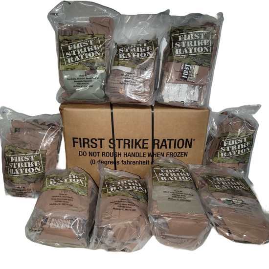 Ration Information: 2,900 calories; 15% protein, 34% fat and 53% carbohydrate. Each FSR contains Entrees, Side dishes, Dessert/Snacks, Crackers or Bread and an Accessory pack containing Utensils, Napkin/Towelette and Condiments. Each Case includes one of each of the following menus [Please note, Menu contents are subject to substitution, removal and/or change by the manufacturer]: