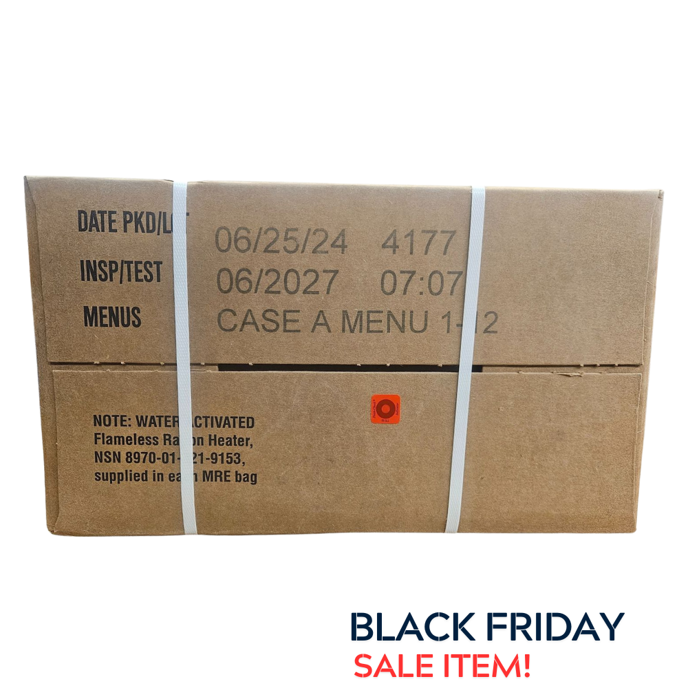Inspection Year: 2027 [Pack Year 2024]. Every Meal Ready to Eat Case is brand new and factory sealed. MREs have a shelf life of 5+ years when properly stored in a cool, dry environment.