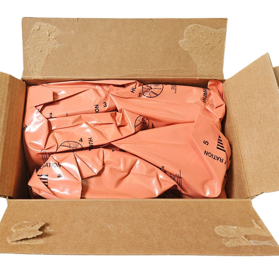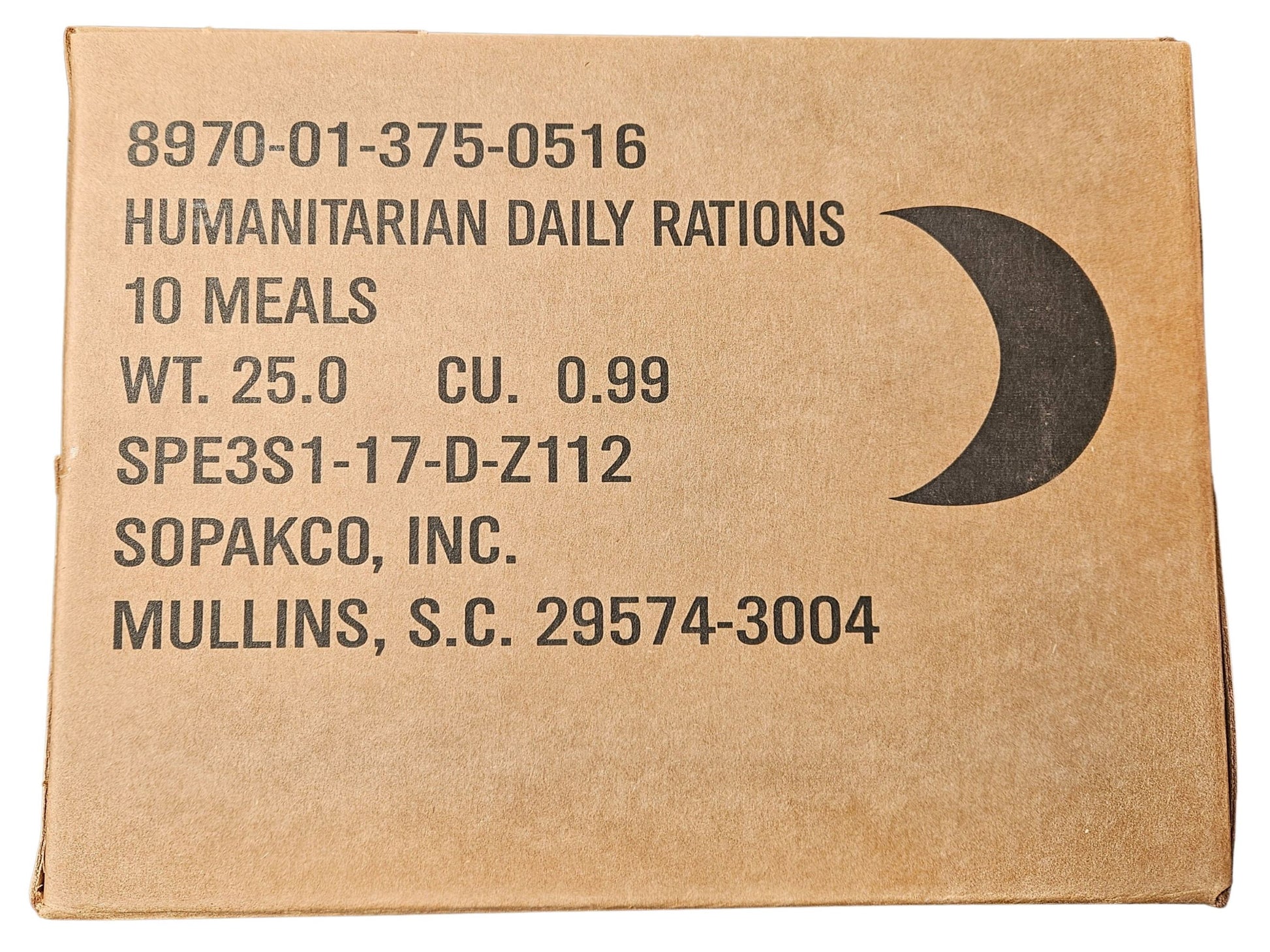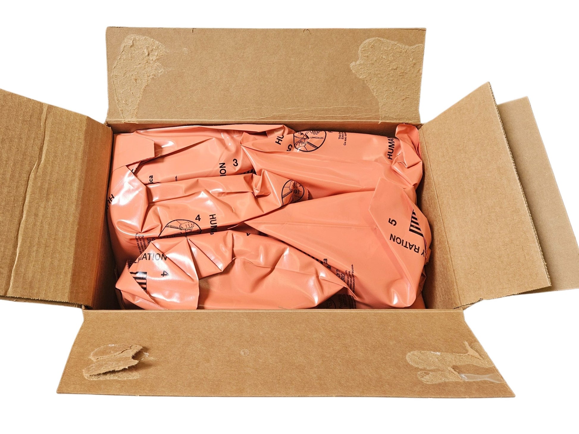 Ration Information: 2,200 calories; 10-13% protein, 27-30% fat, and 60% carbohydrates. Each HDR contains 2 Entrees, Side dishes, Dessert/Snacks, Crackers or Bread and an Accessory pack containing Utensils, Napkin/Towelette and Condiments. Each Case includes two of each of the following menus [Please note, Menu contents are subject to substitution, removal and/or change by the manufacturer]: