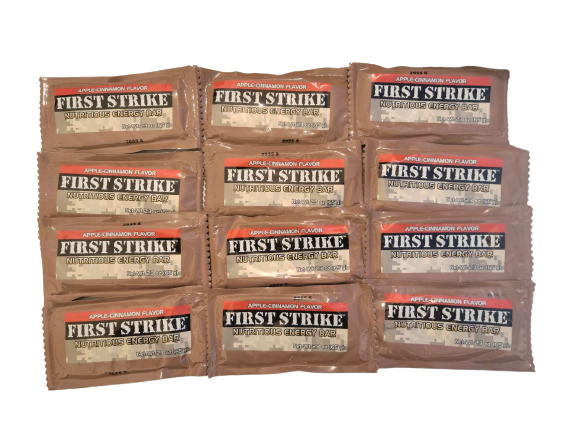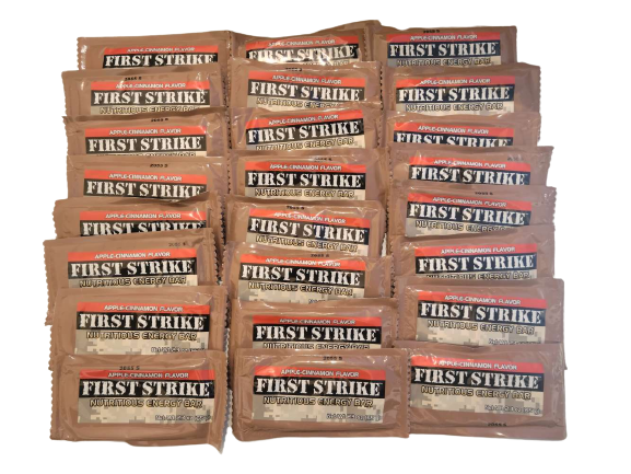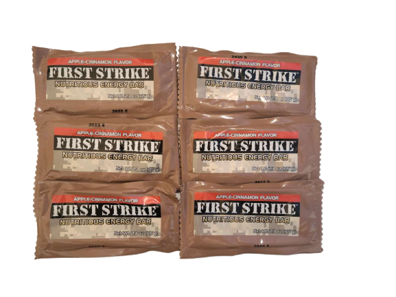 Full-Size Apple-Cinnamon First Strike Bars are your go-to when you need serious fuel in the field. Packed with carbs, protein, and a sweet apple-cinnamon flavor, these bars are designed to keep you going during long missions. Dense, chewy, and made to endure, they’re built tough—just like you. Whether you’re on the move or need a quick energy boost, this bar’s got you covered!