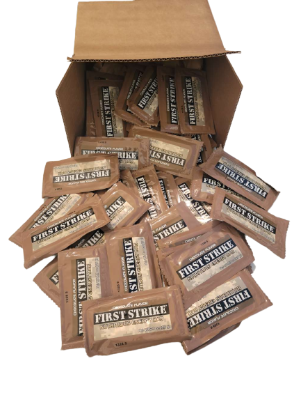 Chocolate First Strike Bars are your mission-ready energy boost, packed with rich chocolate flavor. Designed to fuel you through the toughest challenges, these bars are loaded with the carbs and protein you need to keep moving. They’re dense, chewy, and last forever!