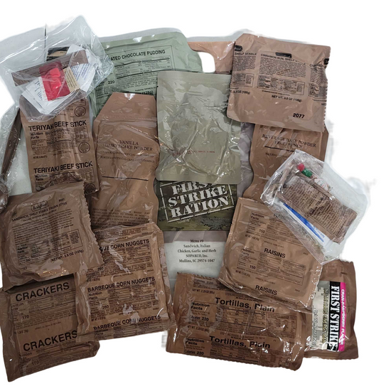 Inspection Year: 2026 [Pack Year 2023]. Every First Strike Ration [FSR] is brand new and factory sealed. FSRs have a shelf life of 5+ years when properly stored in a cool, dry environment.