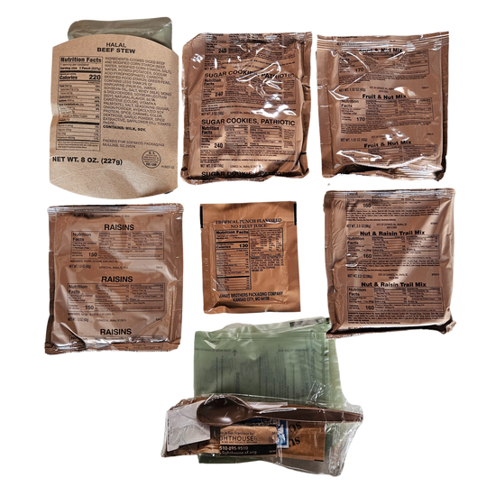 Inspection Year: 2025 [Pack Year 2023]. Every Halal Meal Ready to Eat Ration is brand new and factory sealed. Halal MREs have a shelf life of 5+ years when properly stored in a cool, dry environment.