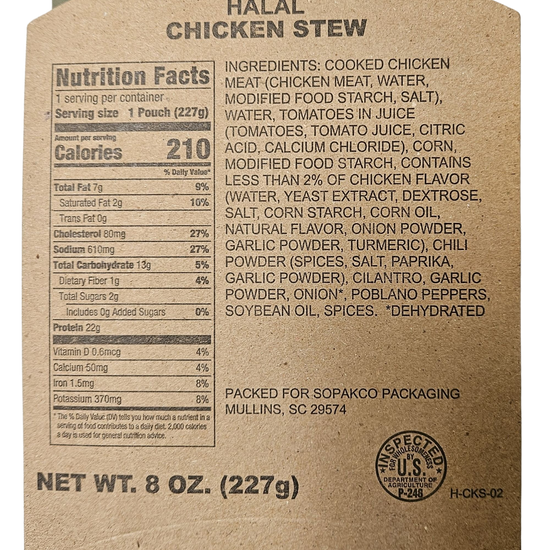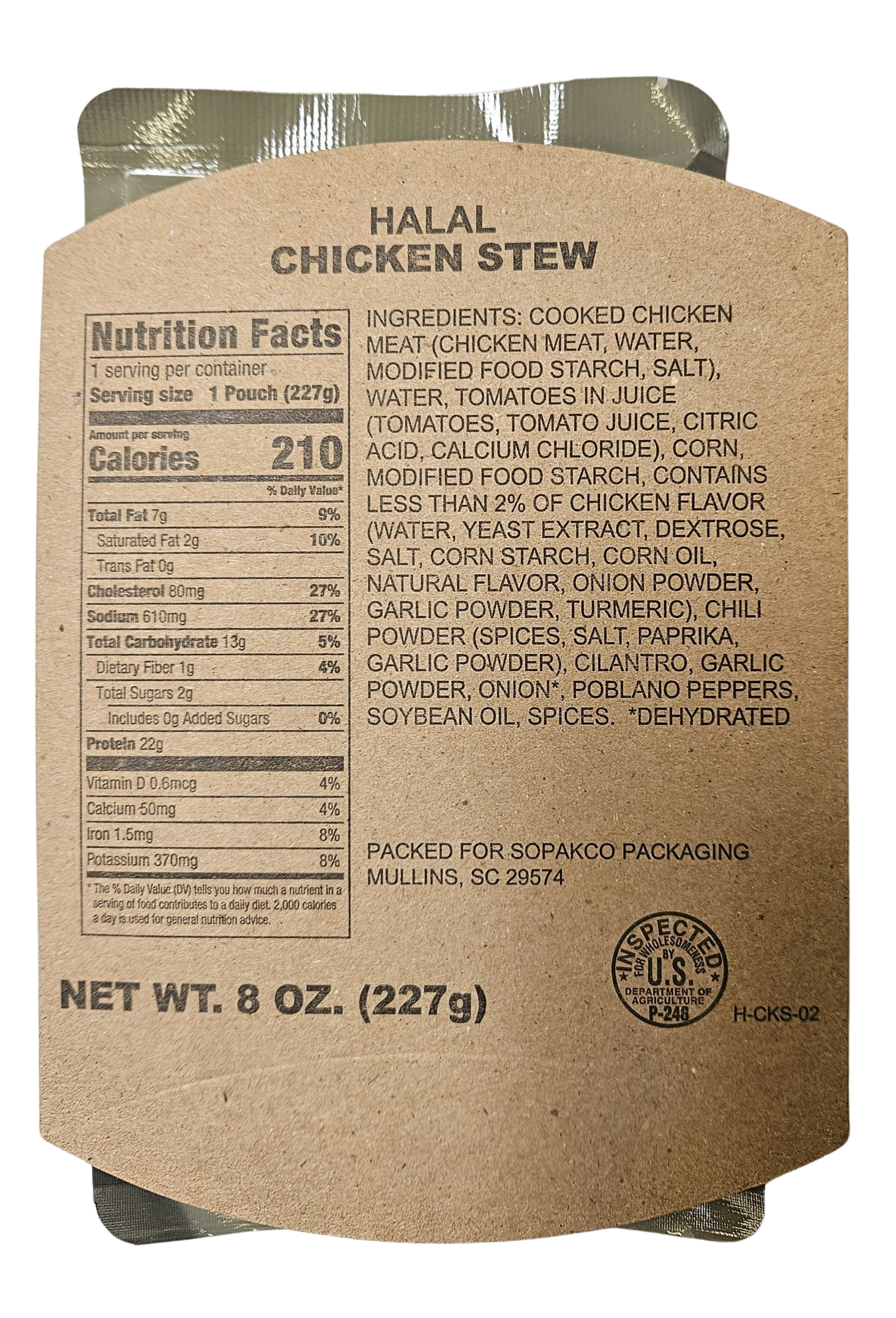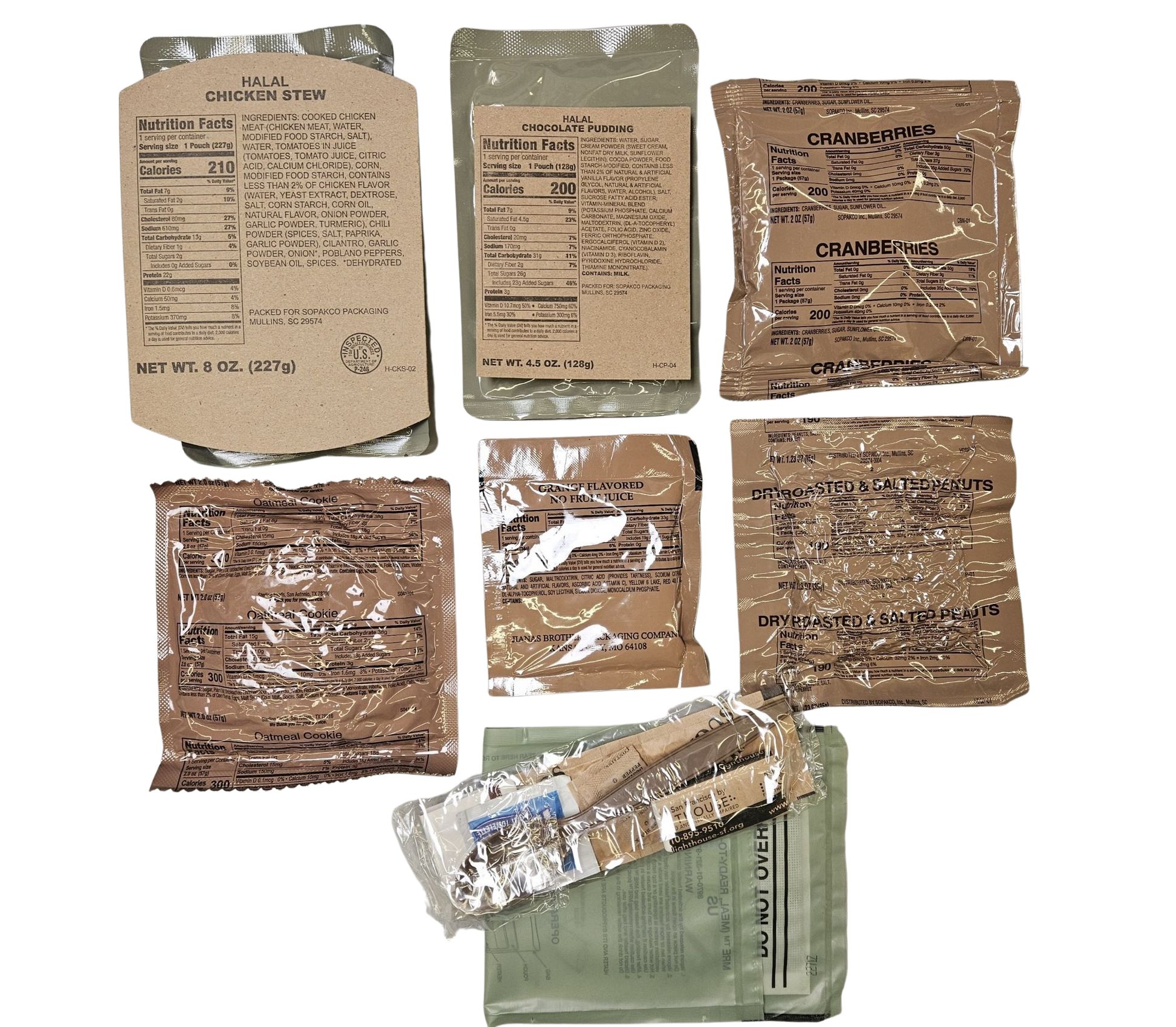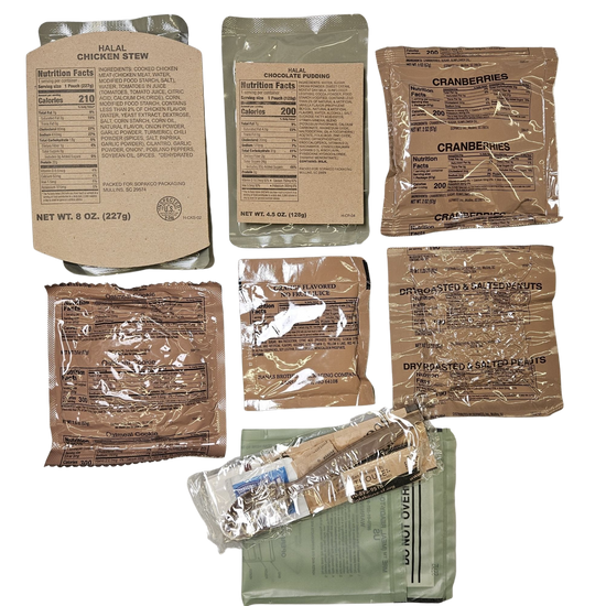 Inspection Year: 2025 [Pack Year 2023]. Every Halal Meal Ready to Eat Ration is brand new and factory sealed. Halal MREs have a shelf life of 5+ years when properly stored in a cool, dry environment.