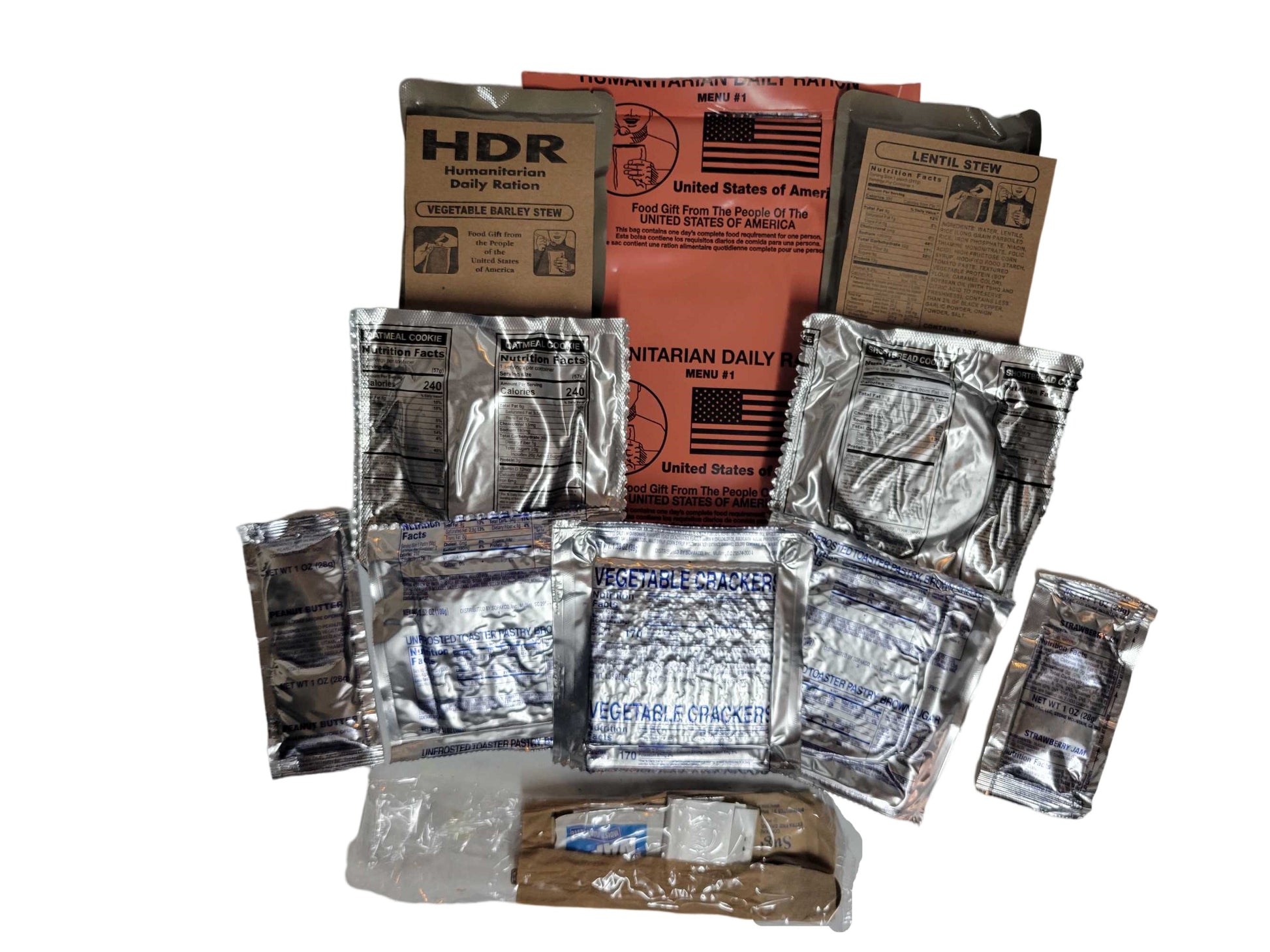 Inspection Date: 11/2023 [Packed 11/2020]. Every Humanitarian Meal Ready to Eat Ration is brand new and factory sealed. HDRs have a shelf life of 5+ years when properly stored in a cool, dry environment.