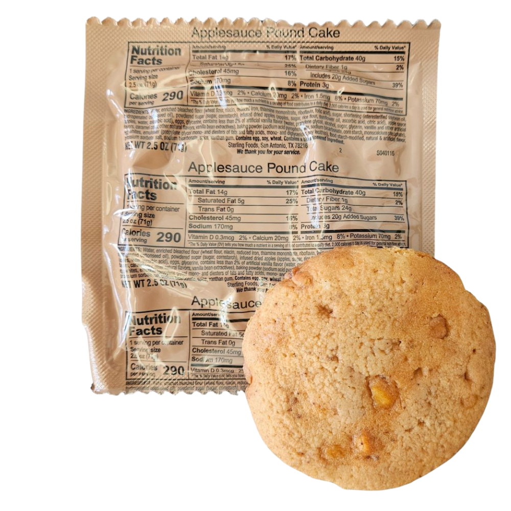 Moist, sweet pound cake made with real applesauce for a soft texture and rich flavor. Enjoy anytime as a quick, satisfying treat for camping, hiking, travel, or emergencies.