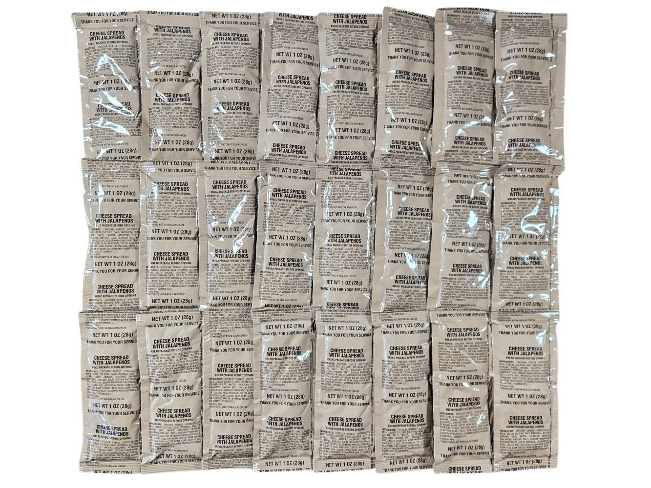 Inspection Year: 2027 [Pack Year: 2024]. Every MRE Cheese Packet is brand new and factory sealed. Cheese Packs have a shelf life of 5+ years when properly stored in a cool, dry environment.