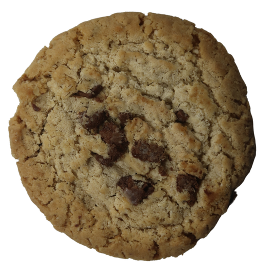 Crunchy oatmeal chocolate chunk cookie with rich cocoa sweetness and hearty texture. A ready-to-eat treat perfect for camping, hiking, travel, or adding to emergency food supplies.