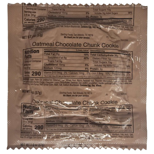 MRE Dessert Component - Oatmeal Chocolate Chunk Cookie