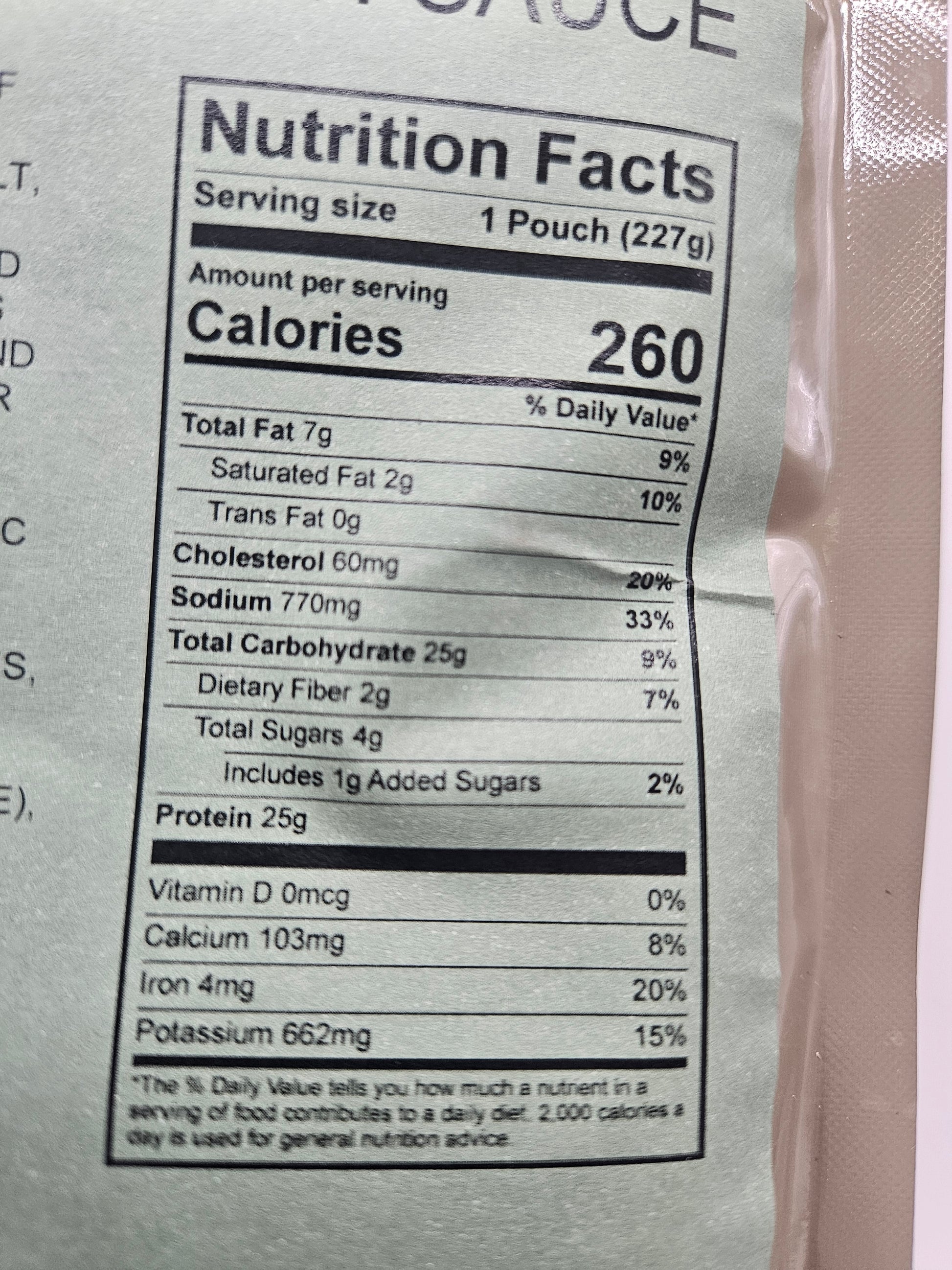 MRE Entree - Southwest Style Beef and Black Beans with Sauce