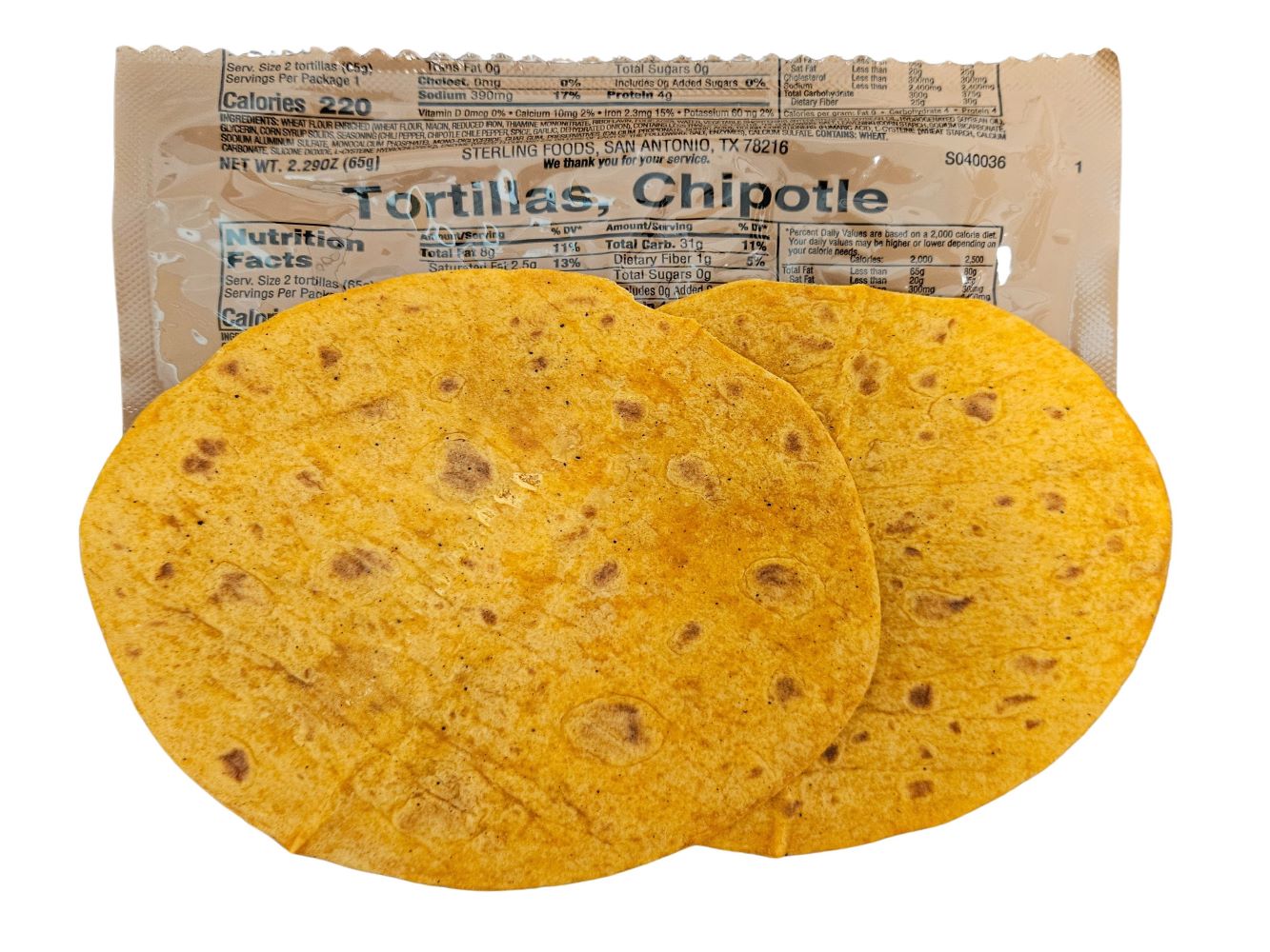 MRE Bread Component - Tortillas, Chipotle [2 Per Pack]